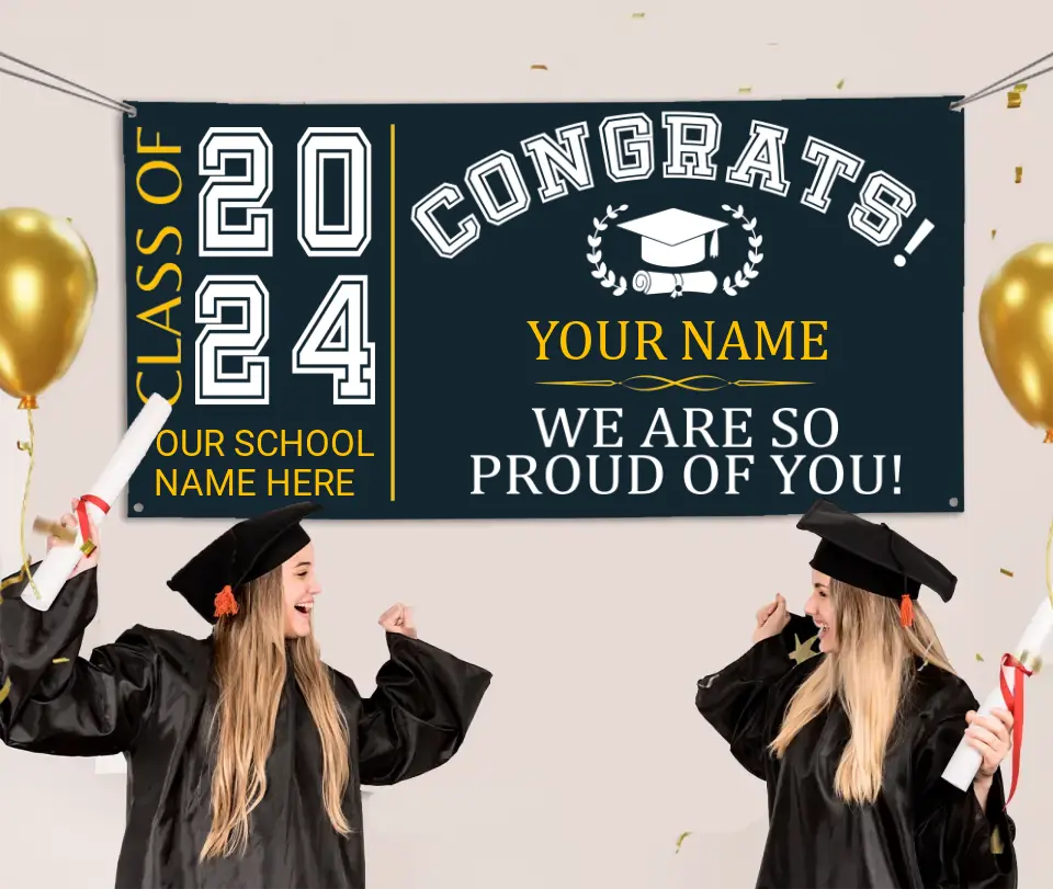 Custom Congrats Graduation Banner, Class of 2024, We Are So Proud Of You