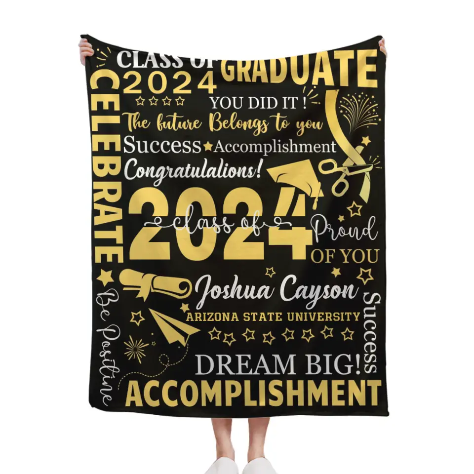 Personalized Class of 2024 Graduation Blankets, Years Are Separated