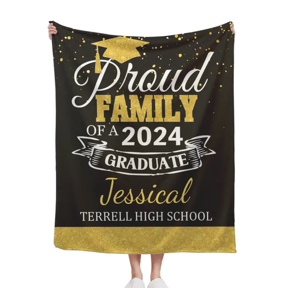 Available Product: Personalized Custom Graduation School Name Blanket, Proud Family of a 2024 Graduate