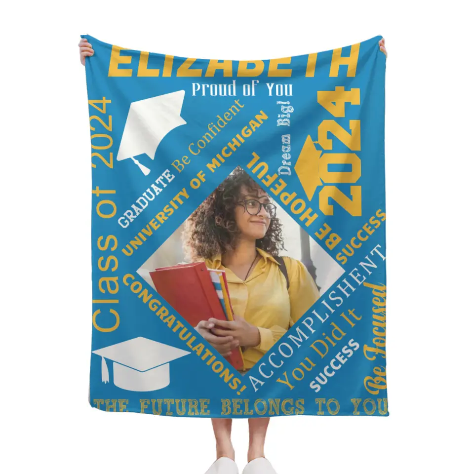 Personalized Blanket, Class of 2024 Blanket, College Graduation Gift For Her Or Him