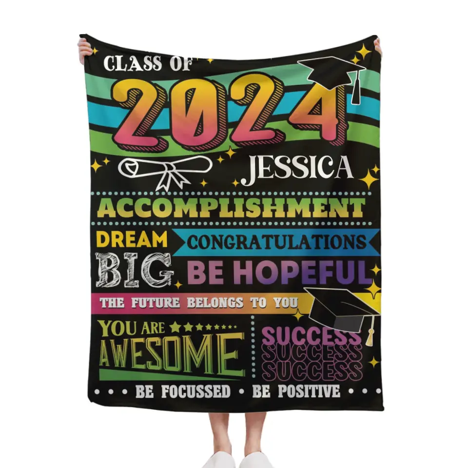Personalized Corrugated Green Gradient Graduation Blanket, Customized Name