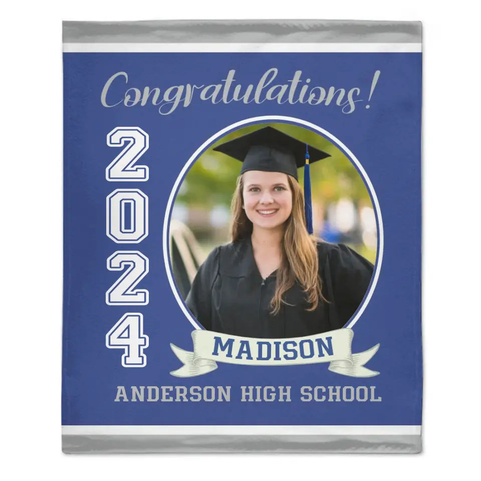 Available Product: Personalized Graduation Blanket 2024 Graduate, Custom Photo,Name And School